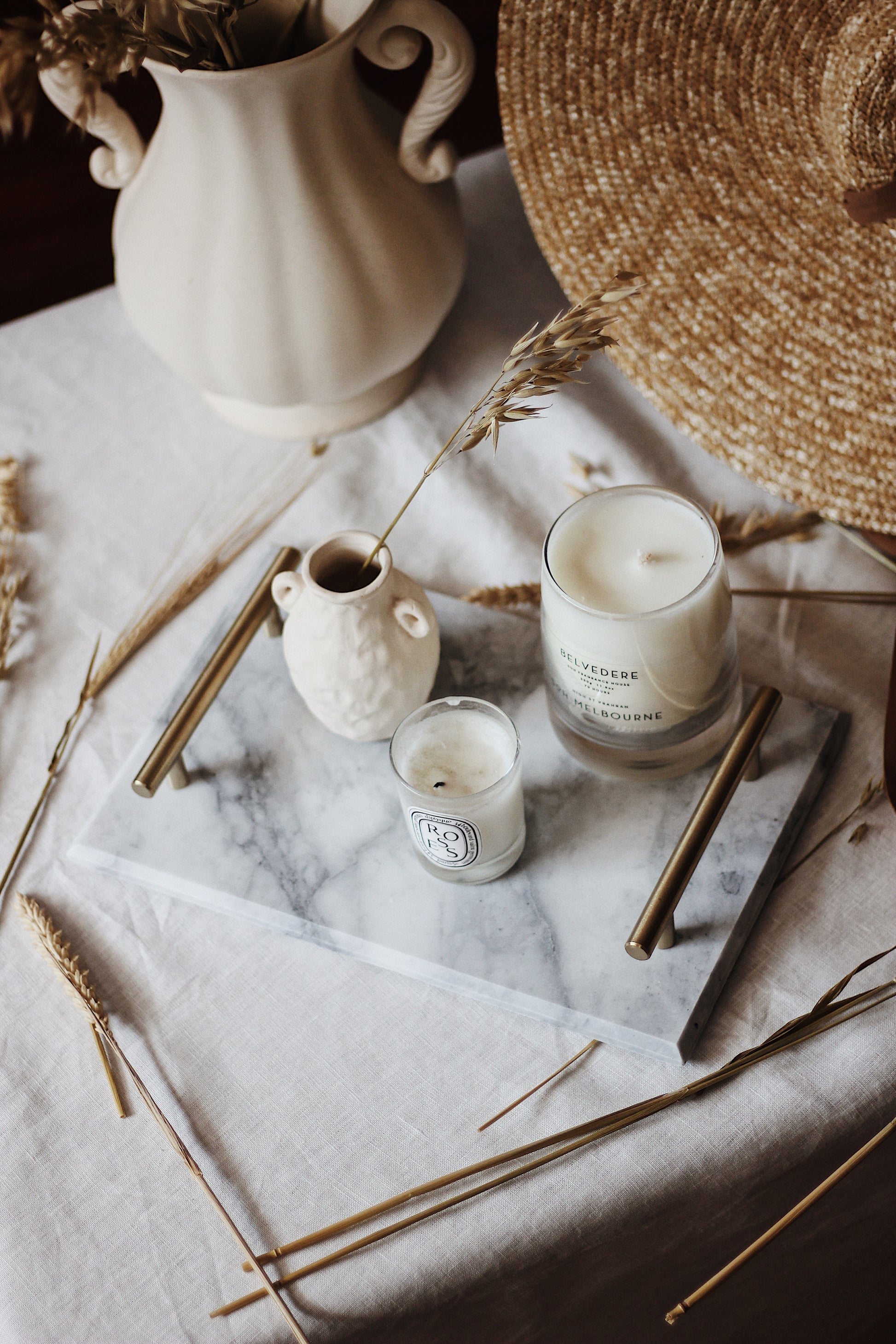 A new addition, our White Rectangular Tray with Handles is the perfect marriage of marble and brass. Perfect for displaying your collection of perfumes and candles. Or serve up some canapés on them and be très chic.